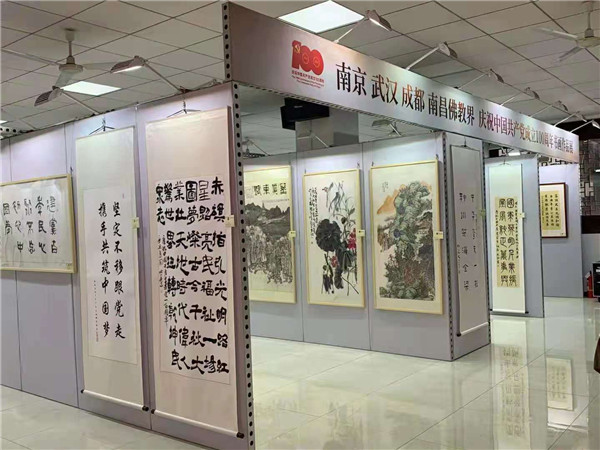 初心百年,同愿同行,2021年5月30日上午,南京、成都、武汉、南昌四省佛教界以书画展喜迎中共党100周年华诞!大家用多种书画形式表达对祖国对人民对中国共产党的真挚感情!